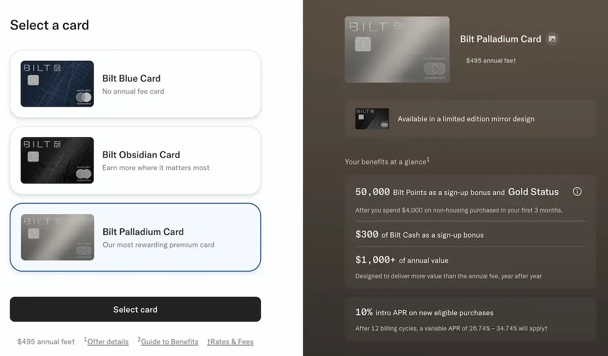You can wait until our deep dive next week on each card, but long story short, the Palladium is going to be the most rewarding card for your future travels. It earns 2x points on all transactions, offers a 50,000 point sign-up bonus, and allows you to earn points on both rent and mortgage payments.